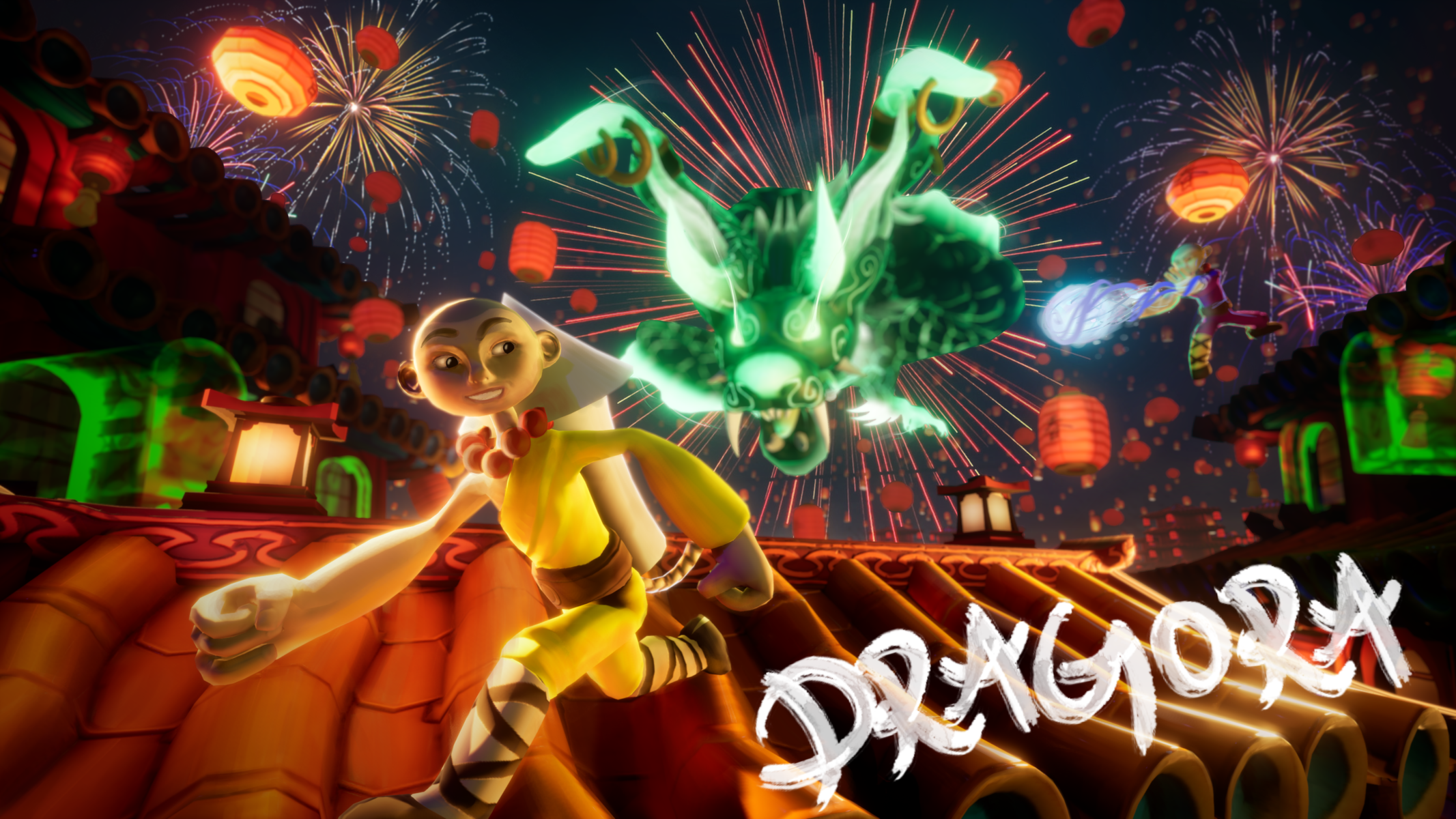 Dans ce festival un jeu est organisé entre deux écoles shaolines pour savoir quelle école aura le privilège de tirer le feu d’artifice final. Mais le temple sur lequel les moines s’affrontent abrite l’esprit d’un dragon qui cherche à protéger son temple du raffut causé par les joueurs. Dans notre jeu vous incarnez un jeune moine shaolin, dont le but est d’aller récupérer les roquettes de feu d’artifice sur les toits du temple et d’en ramener un maximum dans son camp. Mais vous devrez faire attention au dragon ainsi qu’aux tirs de Qi de votre adversaire, qui vous feront perdre la roquette !